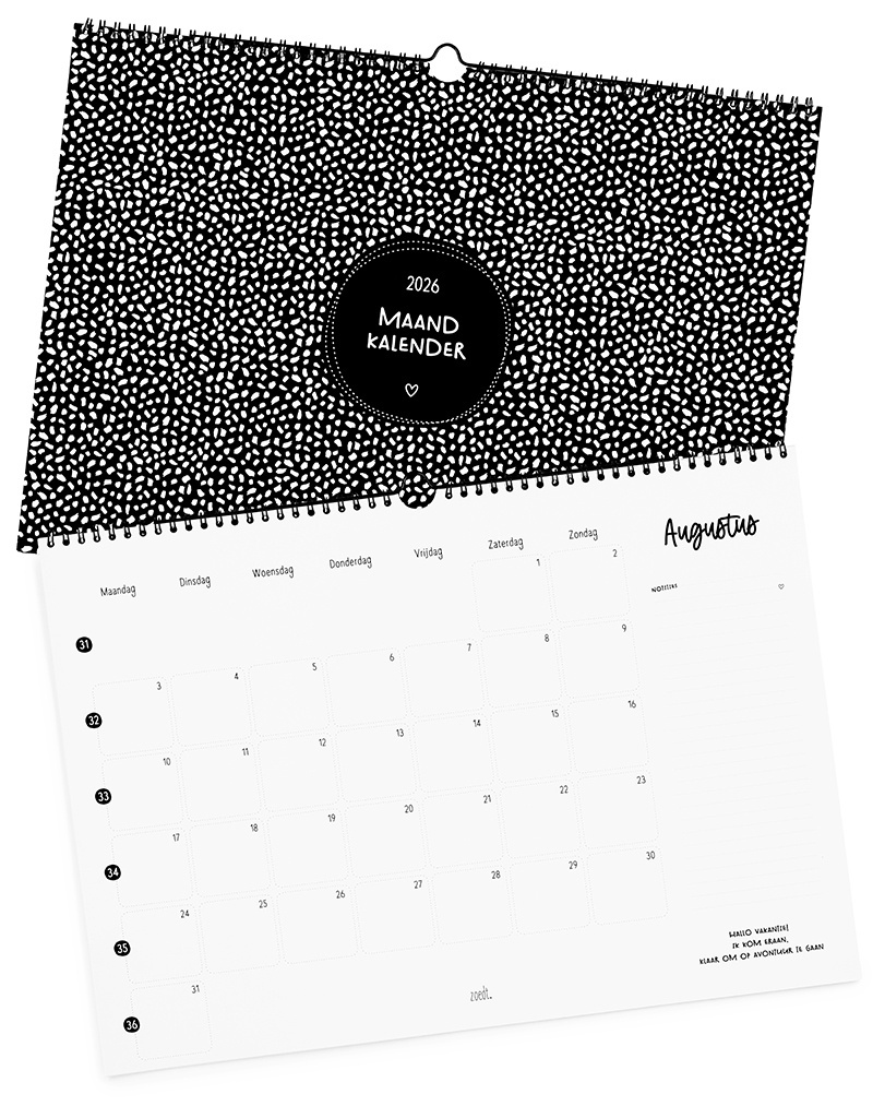 Maandkalender 2026 A3 – stijlvolle zwart-wit kalender van Zoedt