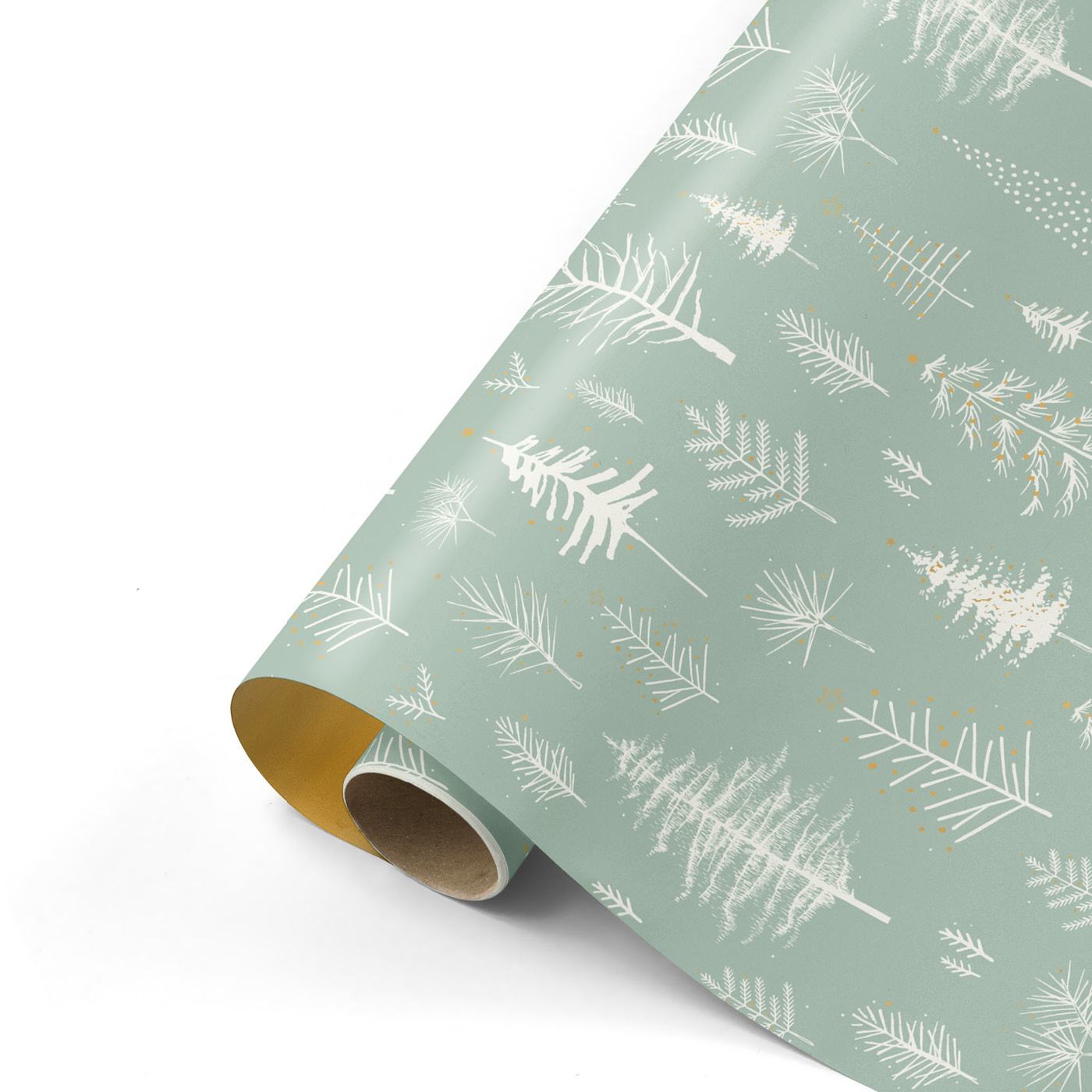 Rol cadeaupapier groen met witte boompjes