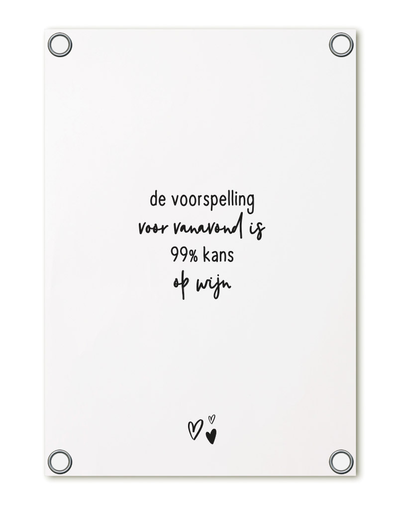 Tuinposter met tekst - Voorspelling 99% kans op wijn - wit | Zoedt