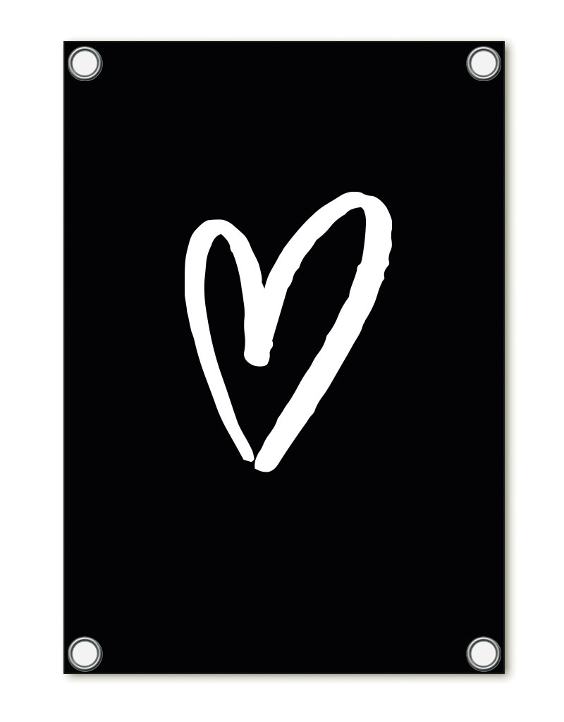 Sfeervolle tuinposter met hart in zwart-wit. Perfect voor terras en tuin. Ideaal als decoratie voor loungeplekken, zithoeken of buitenfeestjes.